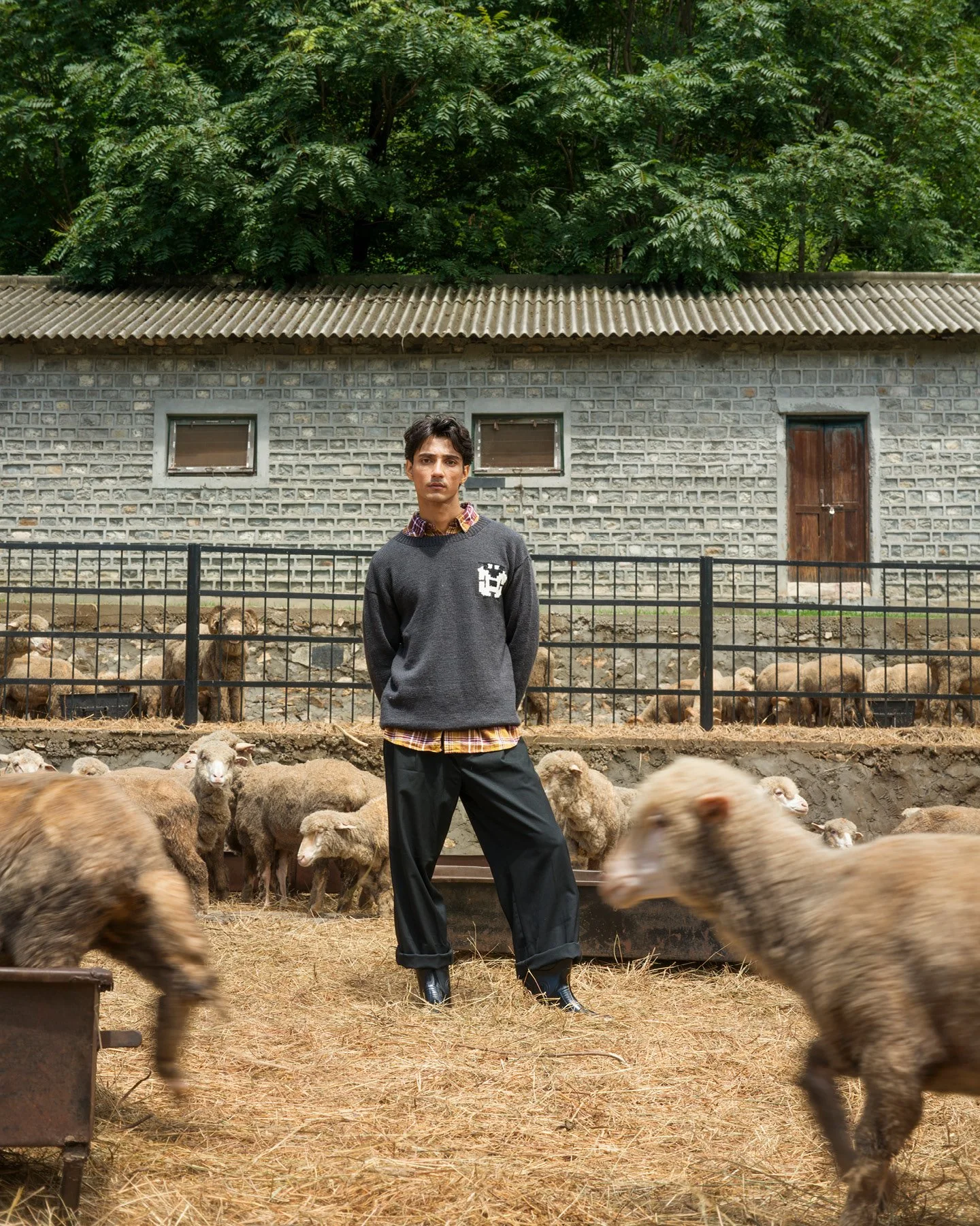 The Fifth Gesture | Royal Enfield x MARGN *Winner of the Vogue India x Royal Enfield: The Himalayan Knot Design Prize (Season 1) * Created in collaboration with the Self-Help Group Jomche in Darcha (Himachal Pradesh, India), the collection explores many forms of prayer and faith. Using the sleeve motif as a symbol of protection, each piece embodies the union of craft and functionality, brought to life through intricate handknits and crochet by an all-women team of artisans.